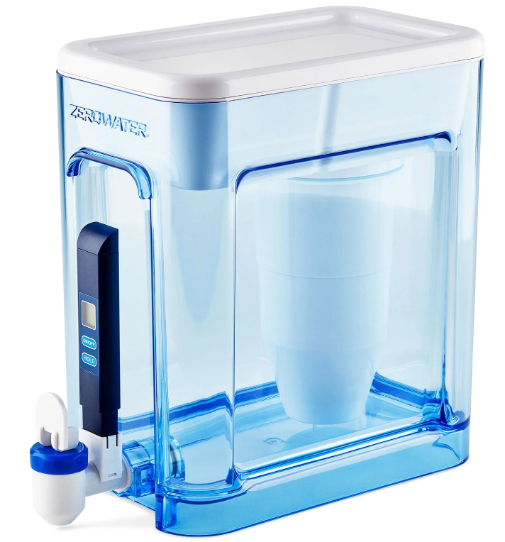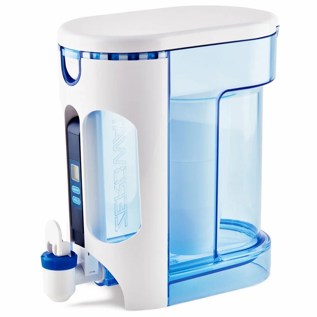 The ZeroWater 80-cup (23L) Water Cooler with 5-stage filtration is ideal for homes or offices, eliminating the need for heavy bottled water. It fits most top-loading coolers and removes 99.6% of dissolved solids—more than any leading brand—for clean, cold, great-tasting water that saves money and storage space.